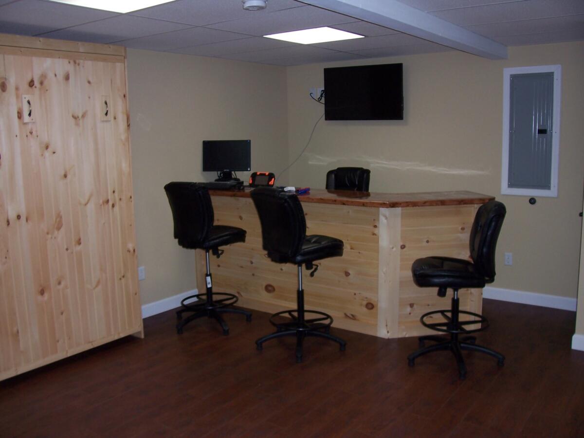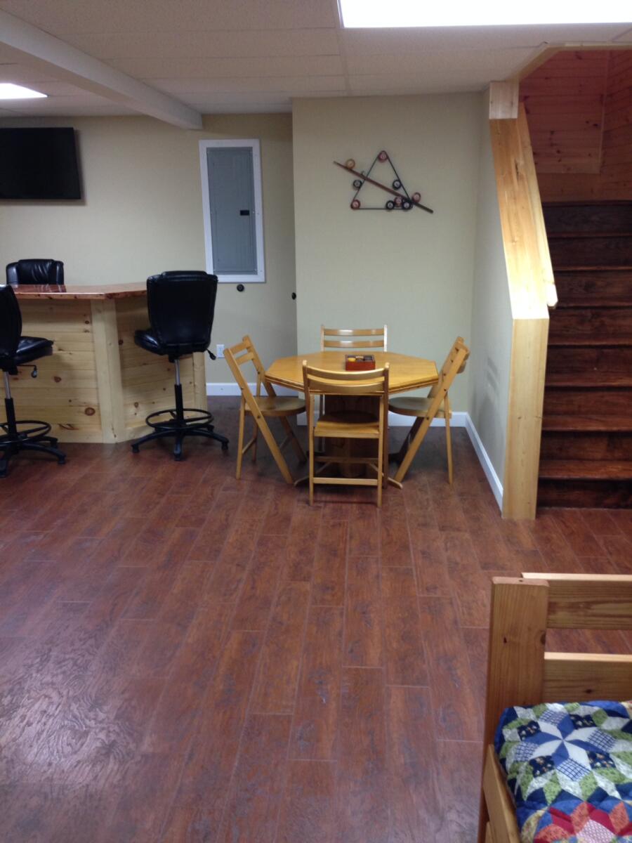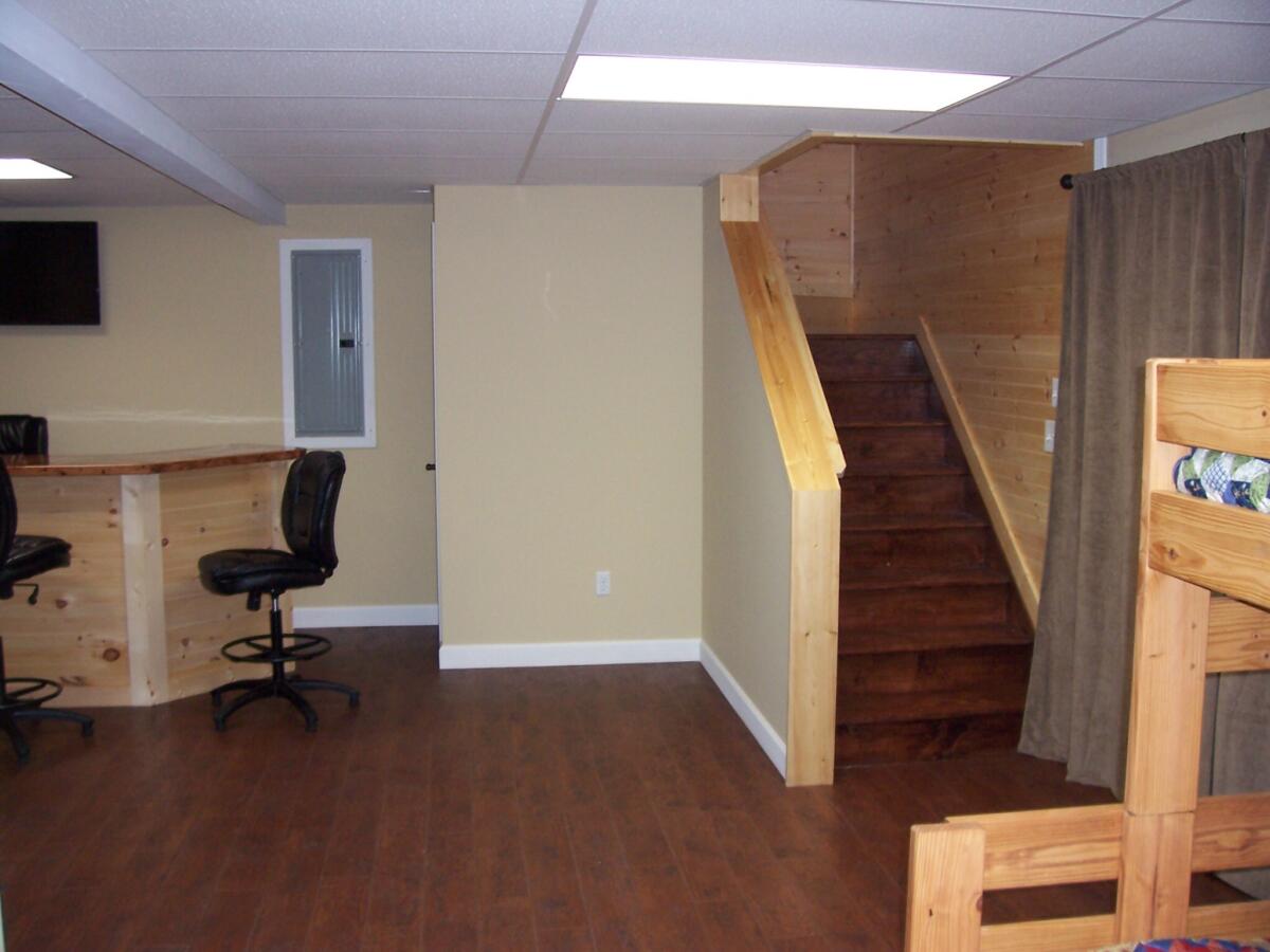 - Queen Murphy bed, bunk beds, sports/game bar with 39″ tv and Wii U game console, washer/dryer and full bath on lower level