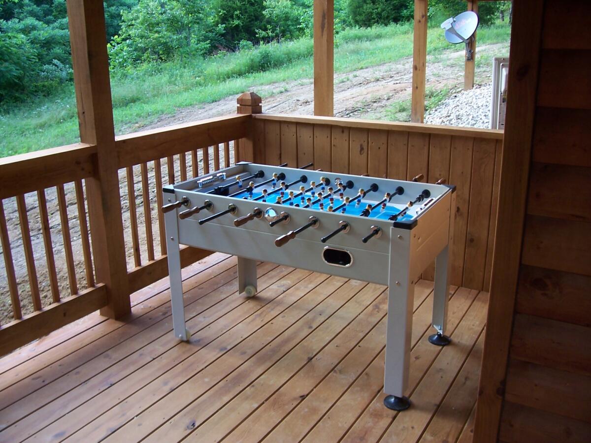 - Outdoor foosball table, seating and charcoal grill